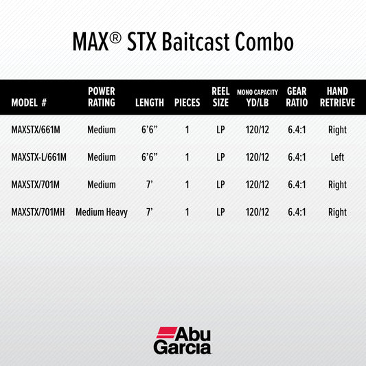 Abu Garcia Max STX Baitcast Fishing Combo, 7' Medium Heavy Rod, Right Handed Reel