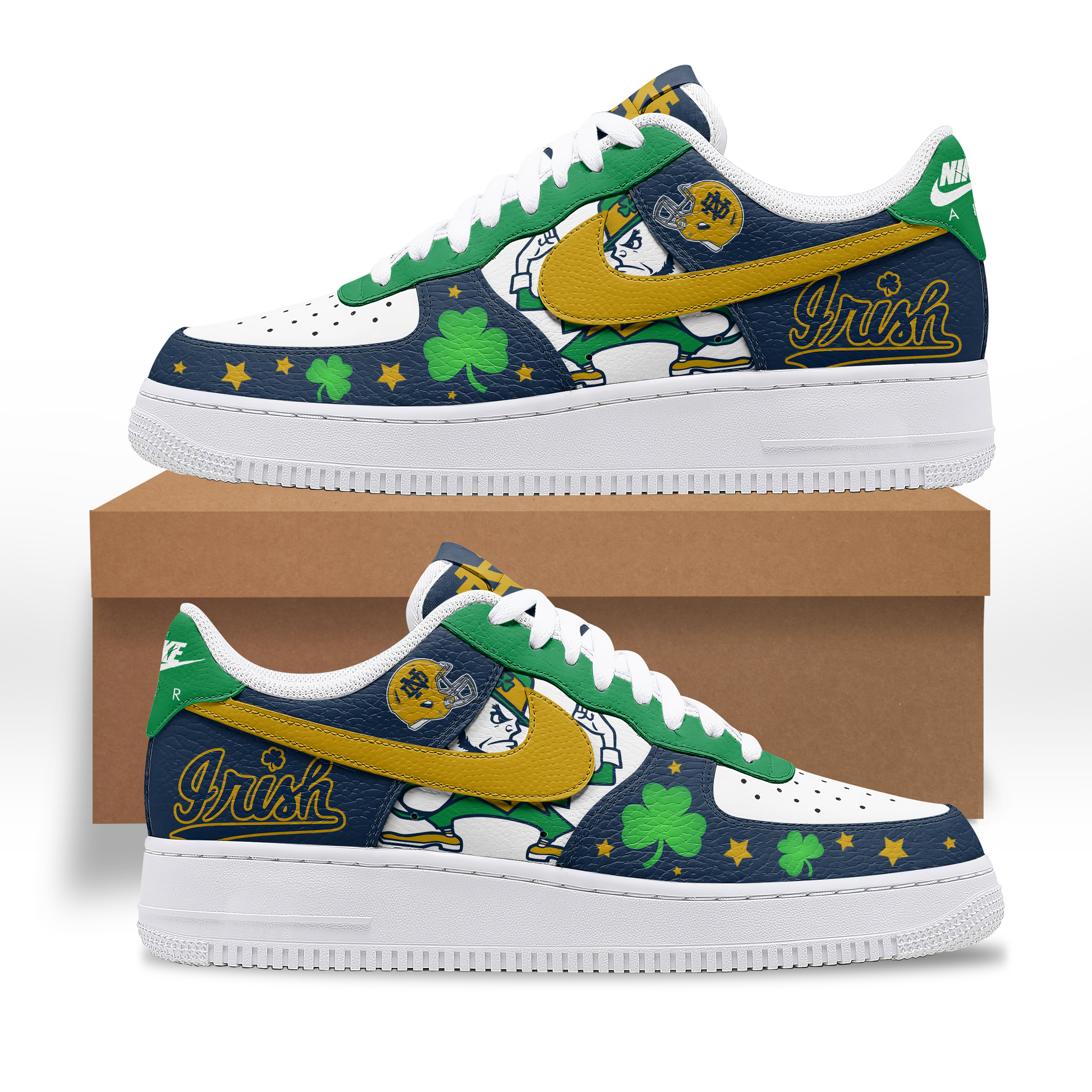 Custom Sneakers (AF1 style): Sleek streetwear design with detailed prints and athletic flair.