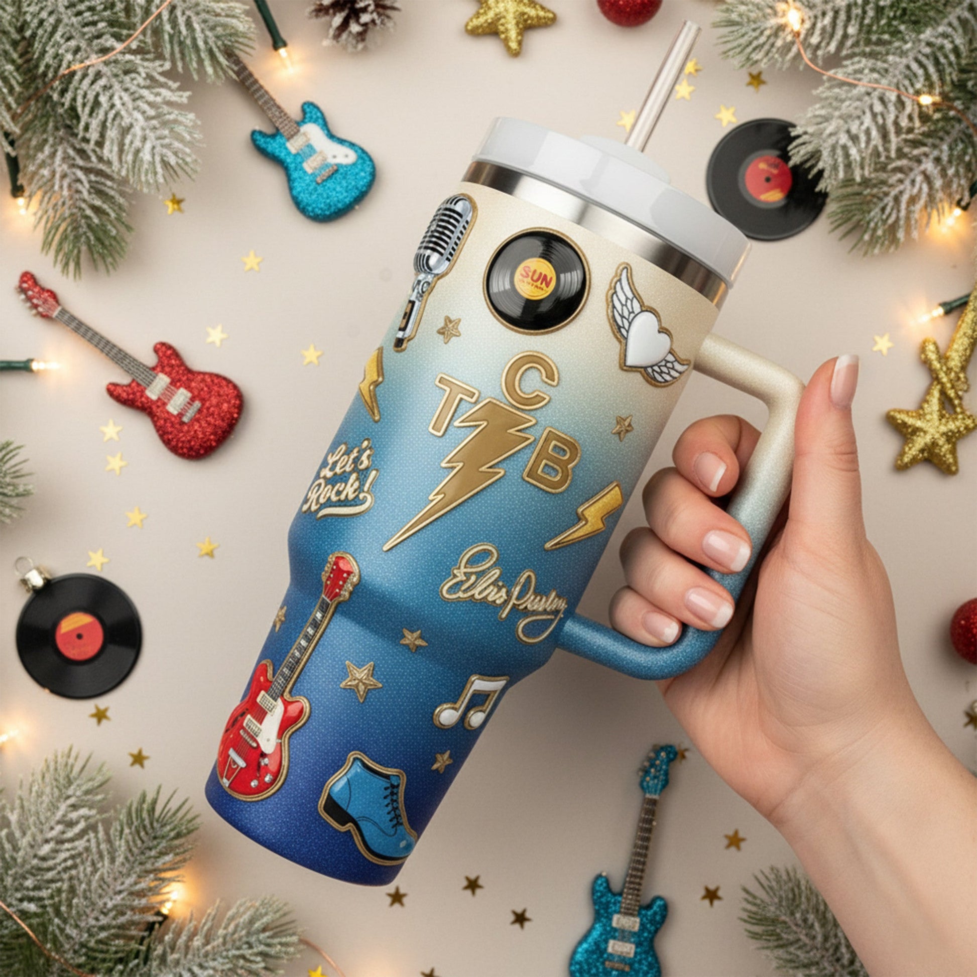 - Sustainable Materials: The recycled stainless steel icon inside the tumbler signifies its eco-friendly construction.